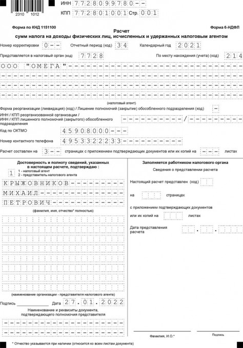 При составлении формы 6-НДФЛ по ОП на титульном листе указывается (п. 2.2 Порядка заполнения расчета 6-НДФЛ):